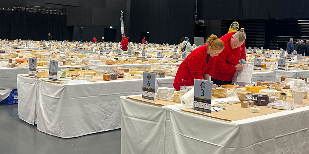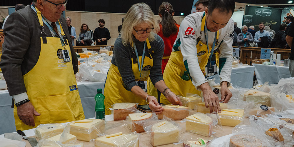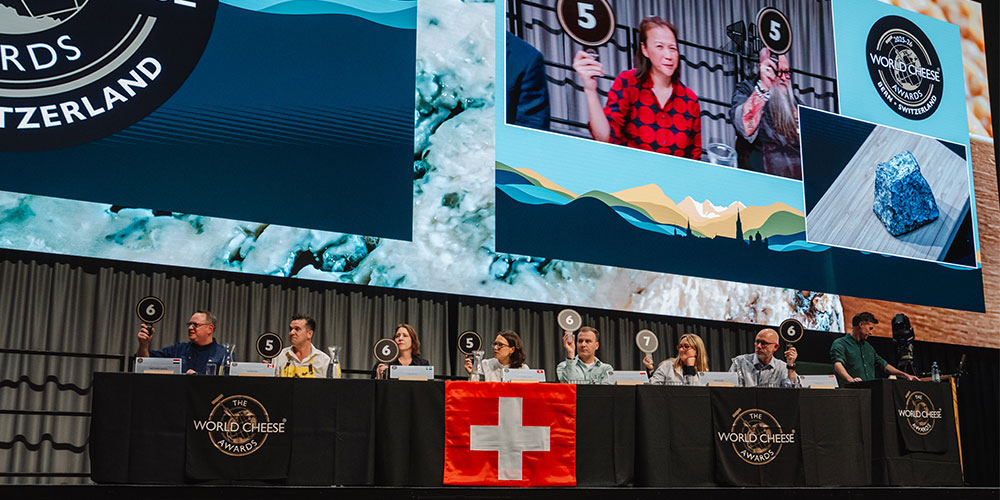 数千種のチーズが一堂に並べられている1次審査時の様子は圧巻! 14名の最高審査員がステージ上でテンポ良く議論を交わしながら、繰り広げる最終審査は、チーズ競技の決勝戦でも見ているかのようなワクワク感があります。