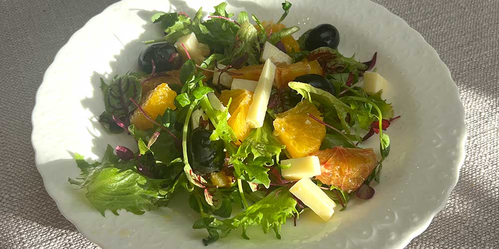 スペインはオレンジ系フルーツの一大産地。オレンジ、マンチェゴ、オリーブオイルを組み合わせたサラダは、「同郷のものは相性が良い」という原則を体現しているかのようです。