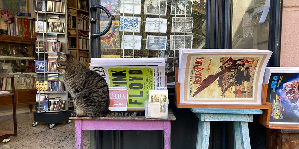 ヘイベリアダの本屋さんでは可愛いネコがお店番