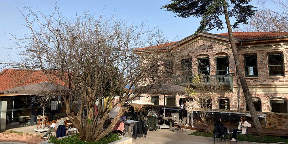 © tomoedagli ビュユックアダの港から歩いて15分ほどの場所にあるのが、イスタンブル市運営の図書館「タシュ・メクテプ・ミュゼスィ(Taş Mektep Müzesi)」。ちなみに、タシュ・メクテプとは「石の学校」という意味です。 もともと19世紀後半に建てられたこの建築物は、綿密で包括的な修復工事を経て島の学習の場へと生まれ変わりました。ワークショップスペースも併設され、2階の展示スペースでは展覧会が催されます。庭にあるカフェや階段で景色を眺めながら、ひと息つく場所としてお勧めです。 石の学校という名の図書館、タシュ・メクテプ・ミュゼスィ